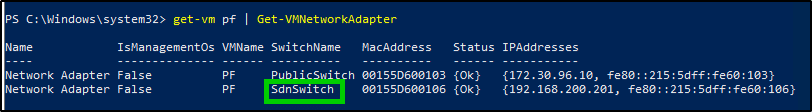 On récupère les 2 interfaces de la VM PFSense afin de repérer celle qui est sur le vswitch SdnSwitch:
