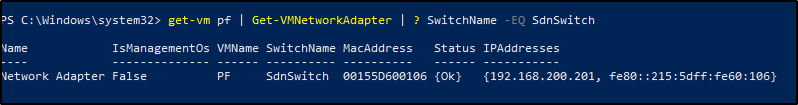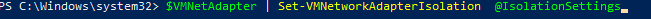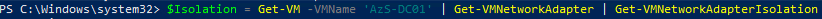 On récupère ensuite la configuration du mode d’isolation d’une VM existante, en l’occurrence l’AD, qui a accès a ce réseau: