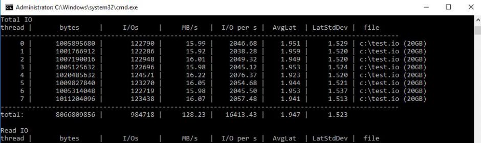 Au total: 16413 I/O avec une latence de 1.9 ms