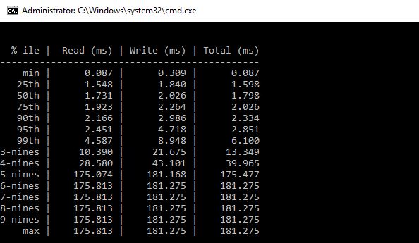 En écriture: 4115 I/O avec une latence de 2.3 ms