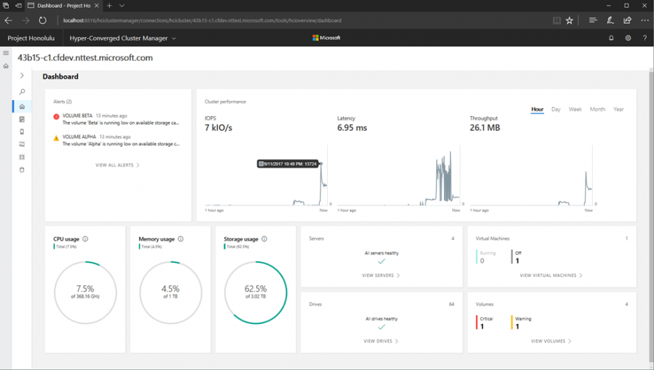 Alors que depuis Windows 2000, Microsoft a fourni un très gros effort en termes d’administration en ligne de commande notamment grâce à PowerShell, l’interface graphique est-elle restée bloquée dans les années 2000 avec le concept de snapin MMC. Au regard de certaines interface d’administration, comme PRISM de Nutanix ou les dernières versions de Navisphère d’EMC, Microsoft est complètement à la traine. À cette fin, la société a annoncé le « Projet Honolulu, » un nouvel outil de gestion graphique basé sur un navigateur qui sera disponible en avant-première pour Windows serveur 2016 version 1709, ainsi que certains (actuellement non précisées) d’autres versions de Windows Server.