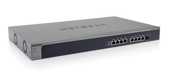 Netgear fournit un switch tout à fait abordable (mois de 1000 €) comportant 8 ports 10 G BaseT ( RJ45) dont un utilisable avec un module SFP (fibre).